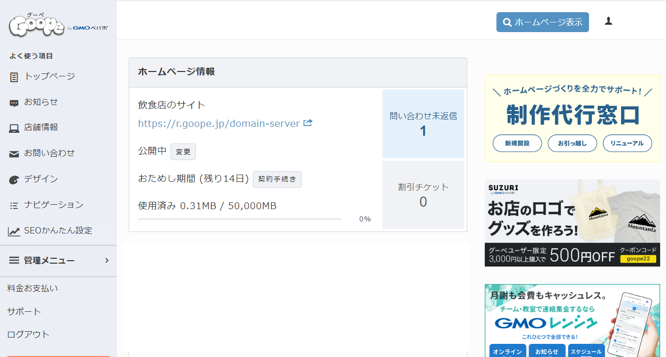 グーペの管理画面や編集機能は簡易的に出来ているので、速ければその日の内にお店のホームページを作成することも出来てしまいます。