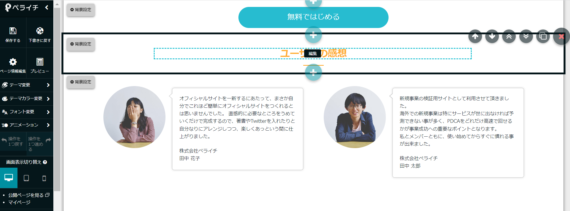 ペライチの編集画面は「わかりやすい」につきます。