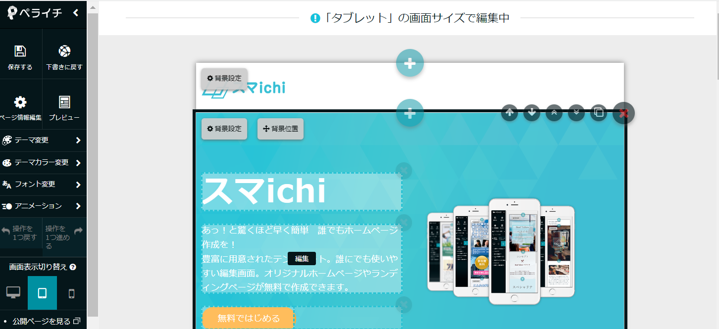 ペライチの編集機能は実際に触ってみてわかりましたが、思った以上に「わかりやすい操作性」で、かつ「様々な編集が出来るそれなりに高機能」な管理画面になっています。